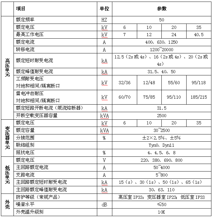 能切断短路及负荷电流,能进行全范围的电流保护,高压有环网(包括双电源)、终端、带高压计量等多种供电方式可供选择,具有传统土建型变电站的所有功能。